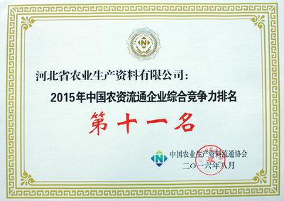 | 中國農資流通企業(yè)綜合競爭力排名第11名 |
