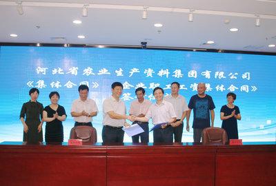 本網(wǎng)訊 8月2日上午,集團(tuán)公司在農(nóng)資大廈第一會議室舉行《集體合同》、《工資集體合同》簽訂儀式,企業(yè)方與職工方協(xié)商代表、監(jiān)督檢查小組成員、勞動爭議調(diào)解委員會成員、集團(tuán)公司職工代表出席。雙方首席代表,集團(tuán)公司董事長、總經(jīng)理李平現(xiàn),集團(tuán)公司工會主席鄭占山分別代表企業(yè)方和職工方在《集體合同》、《工資集體合同》文本上簽字。集團(tuán)公司黨委副書記彭國江主持。