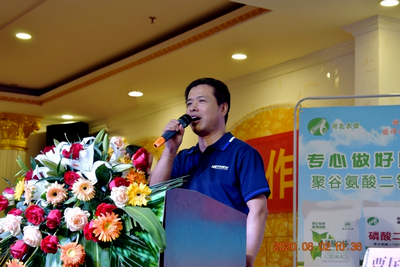 河北省農(nóng)資集團常務(wù)副總經(jīng)理楊瑞生表示,今年疫情發(fā)生后,國家把糧食安全提升到前所未有的高度,“中國人的飯碗要端在中國人手里”?;首鳛榧Z食的糧食,其重要性不言而喻。河北省農(nóng)資集團作為供銷社為農(nóng)服務(wù)企業(yè),始終堅持 “農(nóng)民利益至上,企業(yè)信譽第一”的經(jīng)營理念,緊密結(jié)合市場需求,在2019年推出聚谷氨酸新型二銨,該產(chǎn)品具有超強保水能力,能螯合有毒重金屬,平衡土壤酸堿值,增強作物抗病及抗逆境能力,促進磷肥與中微量元素的吸收。經(jīng)過一年的推廣試驗,肥效顯著,得到廣大經(jīng)銷商和種植戶的認可。