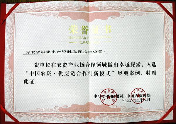 集團(tuán)公司入選“中國(guó)農(nóng)資產(chǎn)業(yè)鏈合作創(chuàng)新模式上榜企業(yè)”榜單