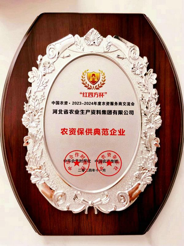 同日,由中華合作時報社、中國農(nóng)資傳媒、中國磷復(fù)肥工業(yè)協(xié)會主辦的“‘紅四方杯’中國農(nóng)資?2023-2024年度農(nóng)資服務(wù)商交流會”在南京舉行。會上發(fā)布了2023-2024年度農(nóng)資服務(wù)商典范企業(yè)名單,集團公司榮獲“農(nóng)資保供典范企業(yè)”榮譽稱號。