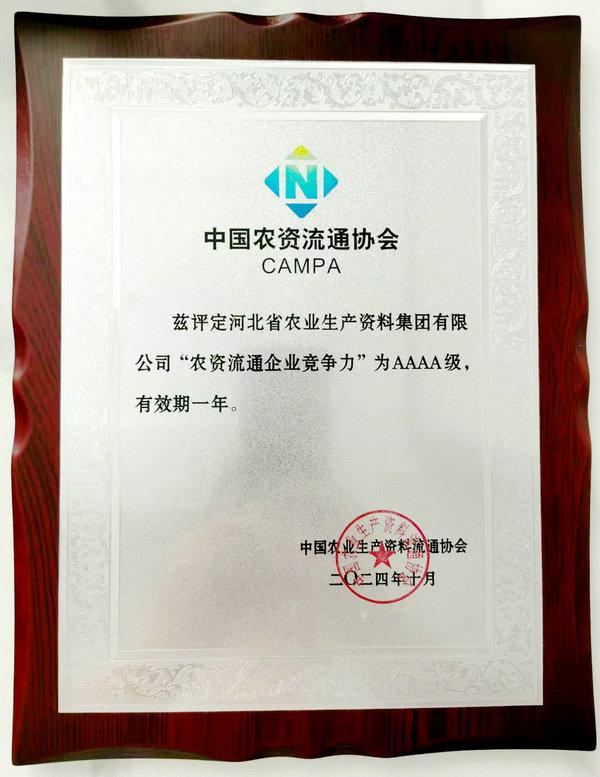 喜報|集團公司榮獲“2024年度農(nóng)資流通企業(yè)競爭力AAAA級”等多項榮譽