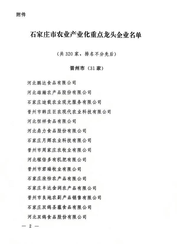 石家莊市農(nóng)業(yè)產(chǎn)業(yè)化重點(diǎn)龍頭企業(yè)名單