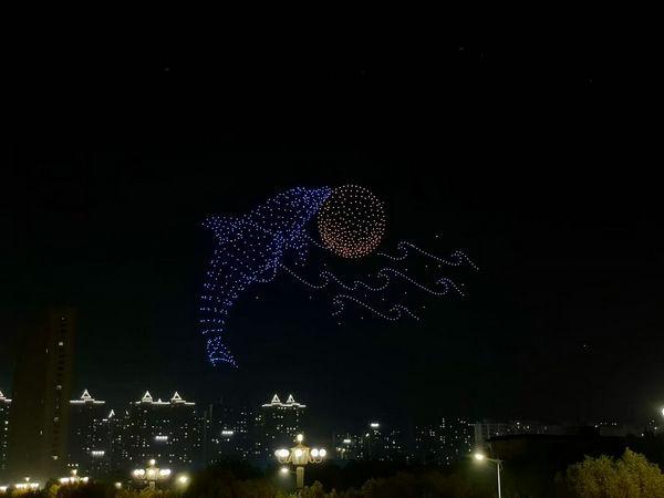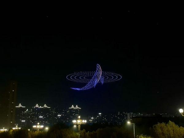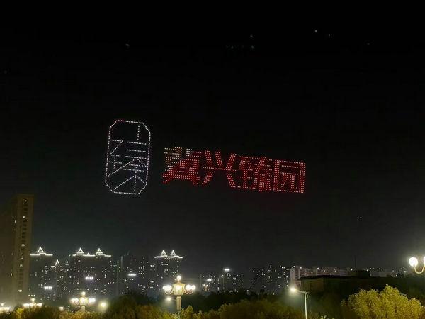19點(diǎn),無(wú)人機(jī)編隊(duì)表演拉開(kāi)序幕。千架無(wú)人機(jī)如星河般升空,在夜空中排列出 “千年儒鄉(xiāng) 一湖靈秀”、“我愛(ài)衡水”、中國(guó)龍、鳳凰、藍(lán)鯨等多種圖案,將冀興臻園與城市共進(jìn)、共建理想家園的美好遠(yuǎn)景集中呈現(xiàn)。
